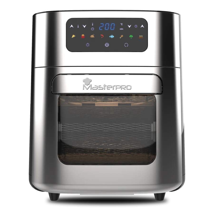 Sus 8 funciones preestablecidas y configuraciones ajustables (temperaturas de 80-200ºC; temporizador de 0-60min) brindan máxima versatilidad con una capacidad de 10L y una potencia de 1700W. Obten una cocina más crujiente y un 30% más rápida que un horno tradicional.